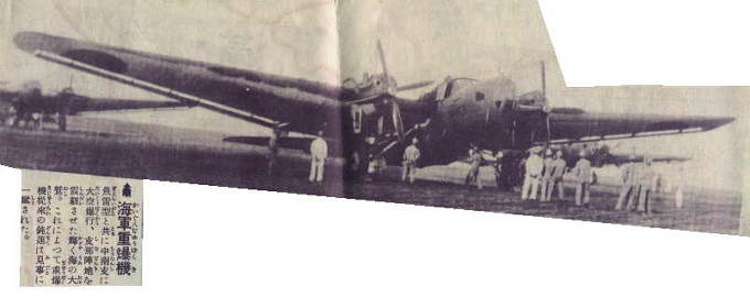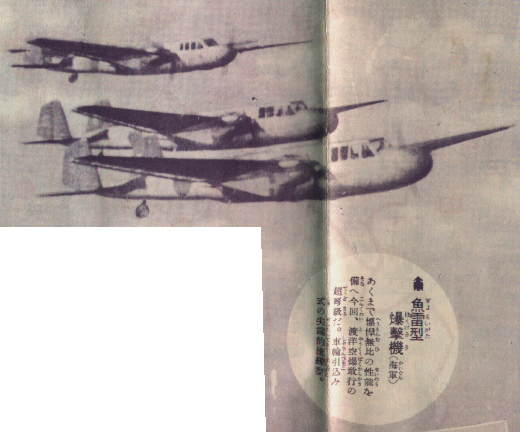 海軍重爆撃機 魚雷型と共に、中南支に大空爆行、支那陣地を震駭させた輝く海の大鷲。これによって重爆機従来の鈍足は見事に一蹴された。