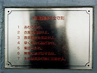 その他艦のあちこちに同様の注意プレートが貼られている。「シースパローミサイル安全守則」では「誤ってミサイルを落としたときは、直ちに主管者(又は当直士官)に報告せよ。」とある。落ちるモノなのだろうか?私は艦艇にうといのでまったく判らない。