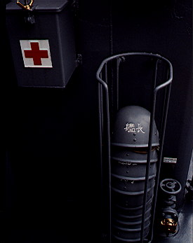 艦内にあった神棚である。金比羅様がお祀りされている。もし陸上戦艦なるものが存在していたら、やはり成田山のお札が貼られるのだろうか?
