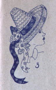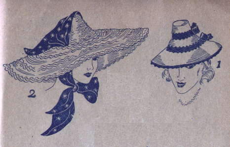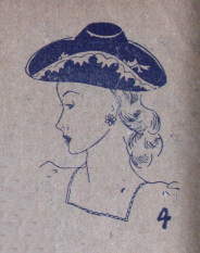 3.西部劇のヒロイン、さては舞姫ステフイ、デューナ、今も胸をときめかすカウボーイ。その大きなカウボーイの帽子をかぶって街上を闊歩したらどんなに愉快でしょう。ストローは着色、色模様のリボンをまきつけただけで、お嬢様向きに再生されてしまいます。