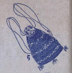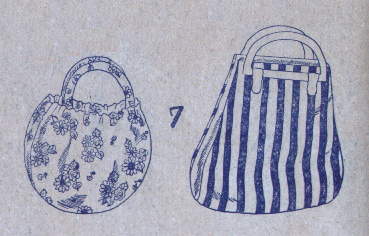 7.左のバッグは、色模様の綿更紗(ちんつ)にゴムテープを入れたもの、たくさん入れることが出来るのが特色です。右はスマートな縞物のバッグ。ぬれたタオルも水着も入れることが出来ましょう。