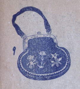 9.色皮のアップリケのハンドバッグです。模様にはアルプスの山の花を用いました。