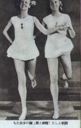 ニッポン、ナチス、われら防共の姉妹国の若き女性よ、一九三九年の夏に鍛えよ、大気の中に力一ぱいに腕をふれ!!