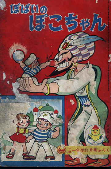 小学館の学習雑誌「小学一年生」昭和35年11月号の附録、「ぽぱいのぽこちゃん」と云うマンガである。何故ポコちゃんがポパイなのか? その疑問は表紙を開くとスグわかる。