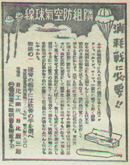 と云う発想で?考案されたのが、以下にご紹介する「隣組防空気球線」である。
