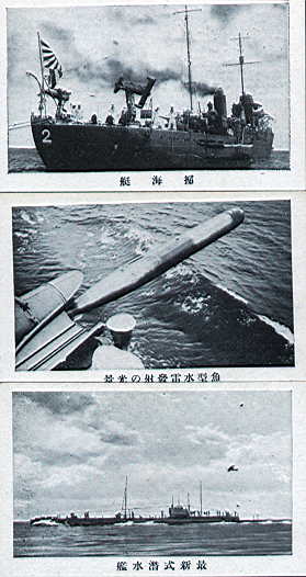 最後は<掃海艇>、<魚型水雷発射の光景>、<最新式潜水艦>と水雷関係で締めてみた。まあ海モノは知識も無いので、こんなものである。