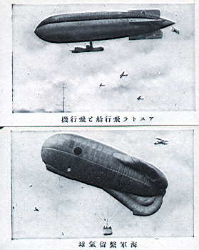 上<アトラス飛行船と飛行機>、下<海軍係留気球>。今日<帝国海軍の兵器>特集をすれば、まずその他諸々に押し込められてしまう兵器達であるが、この時代では、まだカード一枚を張るくらいの実力はあった(らしい)。