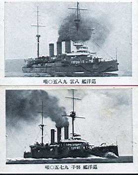 次ぎは巡洋艦シリーズなのであるが、現在我々が<帝国海軍の巡洋艦>として思い浮かべるそれではなく、見ての通り、旧式戦艦達である。上は<八雲>、下が<磐手>である。