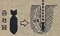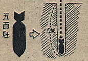 50〜250キロ爆弾の深さ。云うまでもなく、地面の質、落とす高さによって変動するはず