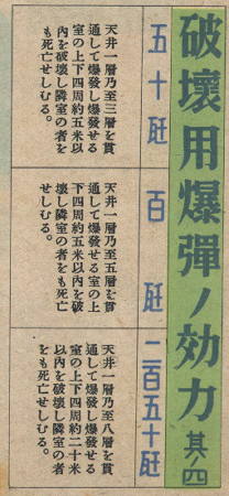 実際のところ、「防空絵とき」以後に発行された書籍、雑誌記事では、250キロ以上の大型爆弾の威力に関するものも掲載されてくる。相手がそう云うモノを落としてくる以上、マスコミもそれをとりあげないわけにはいかないのである。