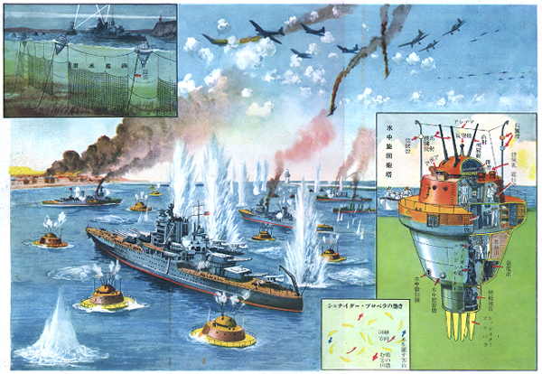 ドイツが行った航空機による英国艦隊への攻撃とその戦果は、日本においても喧伝され、兵器ファンの間に「軍艦対飛行機」論争を勃発させた事は「兵器生活」でもご紹介しているが、科学雑誌の新兵器考案企画にあっては、以下のごとき新案兵器が掲載されるに至ったのである。